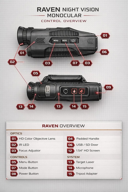 Engineered with cutting-edge infrared technology, crystal-clear HD optics, and a durable field-ready design, the Raven gives you the power to operate with precision in the darkest environments.